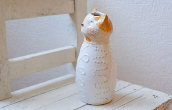 〇ねこ花瓶の底のあたりの釉薬が引っ張られているものがございますが、使用に問題はございません。(防水処理済)