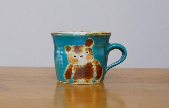 落ち着いたベースの器に、愛嬌たっぷりの可愛すぎる絵柄たち。